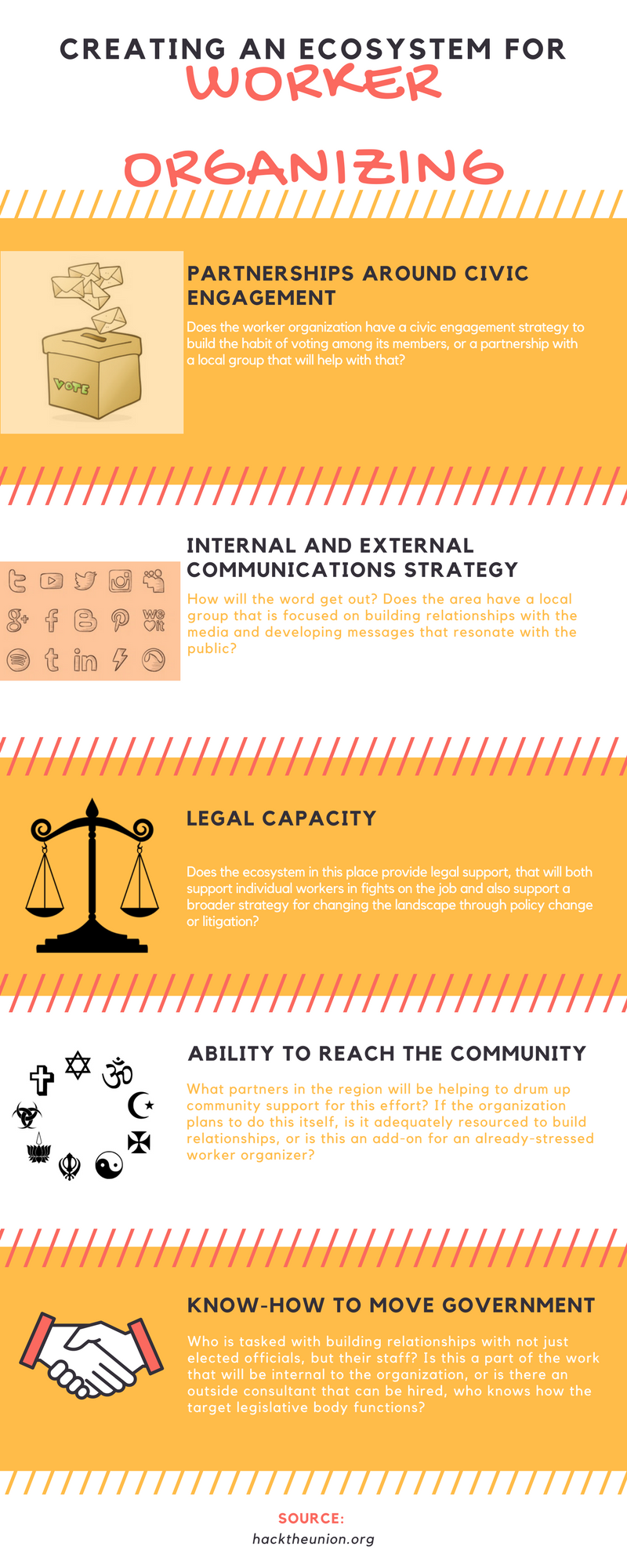 - Does the worker organization have a civic engagement strategy to build the habit of voting among its members, or a partnership with a local group that will help with that?
